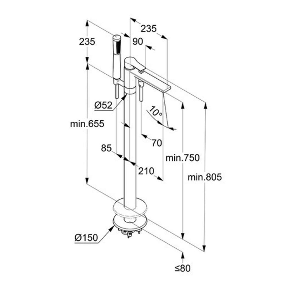 Páková vanová baterie stojící na podlaze, včetně ruční sprchy