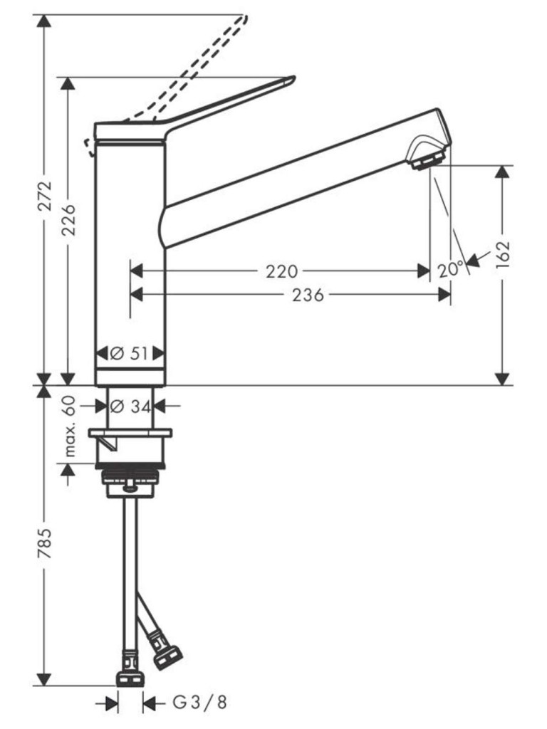 Kuchyňská baterie Zesis M33, 1jet, sklopná pod okno