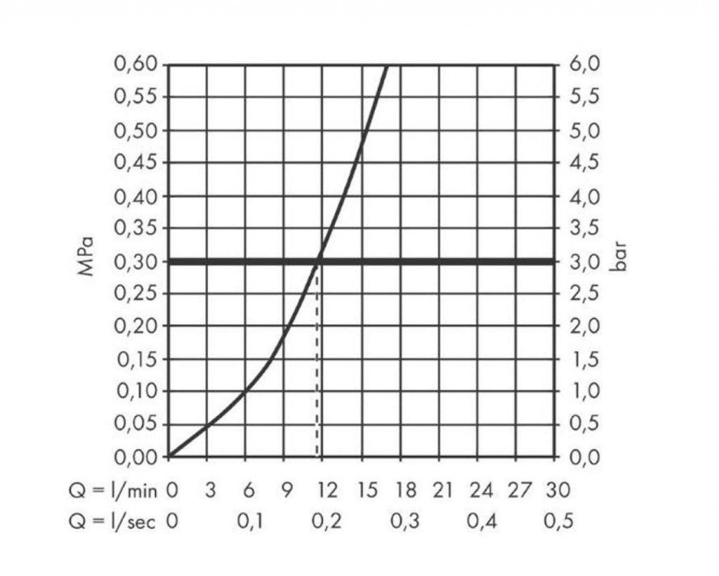 - max. průtok: 11,6 l/min (tlak 3 bar)