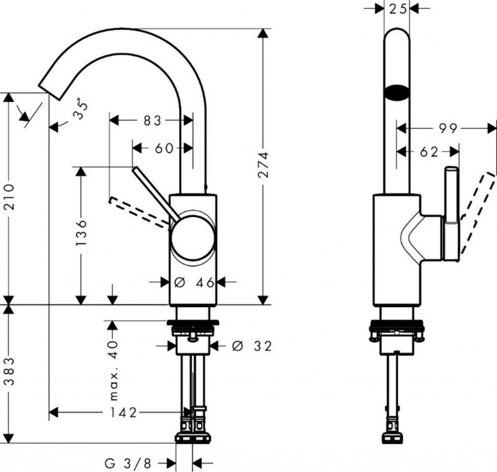 - délka výtoku: 142 mm