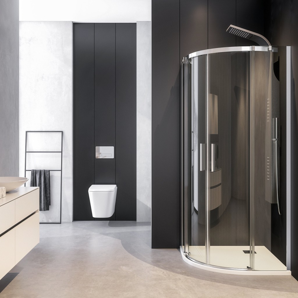 Sprchový kout obloukový se dvěma zásuvnými dveřmi. Jednoduchým a stylovým designem sprchového koutu s minimalistickými prvky konstrukčních částí.