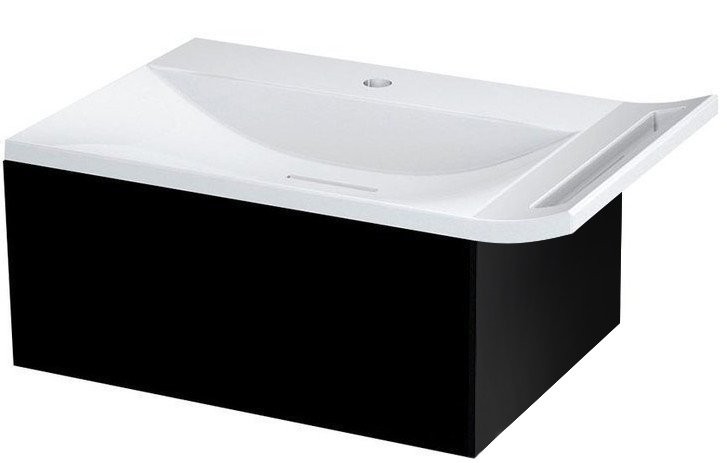 Netradiční umyvadlo LUPO iniciovalo návrh skříňky ZEUS. Ostré linie skříňky korespondují s futuristickým umyvadlem a bezúchytkové otvírání zásuvky vytváří neobvyklý designový celek.