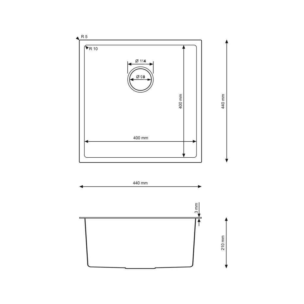 Kuchyňský dřez z nerezové oceli 44 x 44 se sifonem je praktickým a stylovým řešením do každé moderní kuchyně. Je vyroben z kvalitní INOX oceli s kartáčovaným saténovým povrchem, který je odolný, snadno se udržuje a působí elegantně.