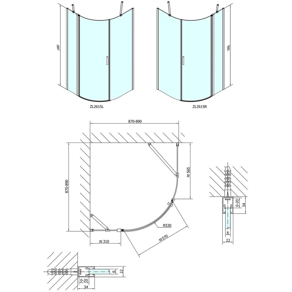 Svěží design sprchových zástěn série ZOOM je propracován do nejmenších detailů. Sprchové dveře s hranatými otočnými profily se zvedacím mechanismem umožňují snadné otevírání vně i dovnitř a zaručují maximální šířku vstupu. Výjimku tvoří čtvrtkruhové zástěny typu ZL2615 (90x90 cm) a ZL2616 (100x100 cm), které se otvírají pouze směrem ven.