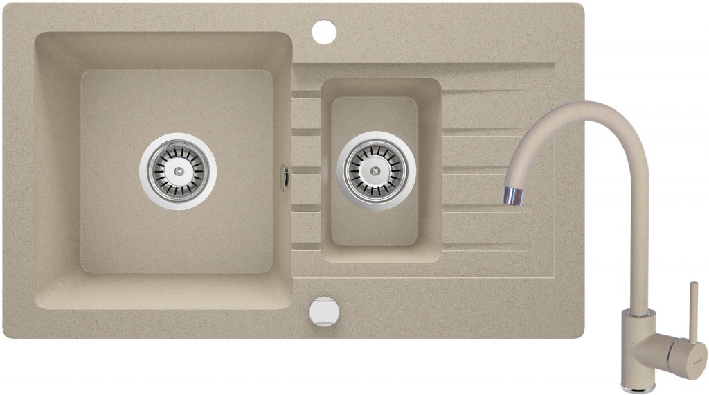 Granitový dřez Deante série ZORBA s pákovou dřezovou baterií je vyroben z nejkvalitnějšího přírodního granitového kompozitu. Existuje důvod, proč má 18letou záruku výrobce. Vyznačuje se odolností proti nárazu, vysoké teplotě a náhlým změnám, v souladu s evropskou normou PN-EN 13310. Elegantní povrch nebledne a neztrácí lesk. Dokonale se hodí k dřevěným a kamenným deskám. Inovativní 1,5miskový dřez s odkapávačem se skvěle hodí do malých kuchyní, kde je potřeba použít více než jednu mísu. Odkapávač funguje zároveň jako sušák a profilovaný povrch účinně odvádí vodu stékající z nádobí nebo umytých potravin. Menší přihrádku lze použít k oplachování a sušení příborů, jemných sklenic nebo k rozmrazování masa či zeleniny.