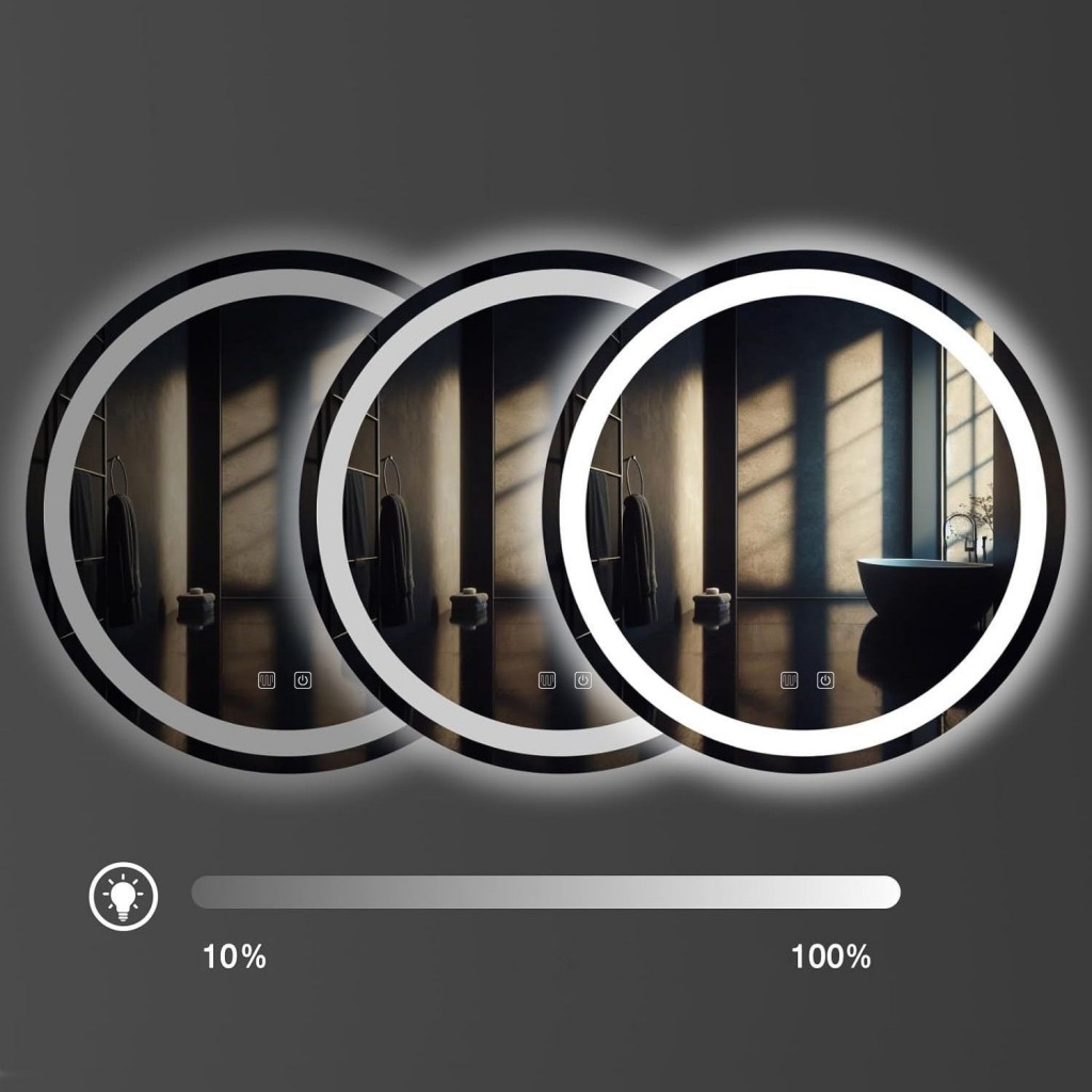 Kulaté zrcadlo BAS s LED podsvícením je ideální pro ty, kteří oceňují pohodlí při používání a moderní design. Zrcadlo je vyrobeno z nejkvalitnějších materiálů, vypadá perfektně a je velmi odolné. Má na výběr ze tří barev LED světla, které lze měnit dotykem – teplé, neutrální a studené, a funkci ohřevu, která zabraňuje zamlžování povrchu. Dotykový spínač umístěný na povrchu zrcadla svítí, když je funkce aktivní.