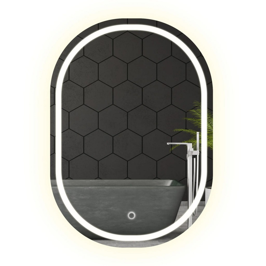 Moderní koupelnové zrcadlo vyhřívané a osvětlené funkcí změny barvy světla. Oválné zrcadlo s LED podsvícením je ideálním návrhem pro ty, kteří oceňují pohodlí při používání a moderní design .