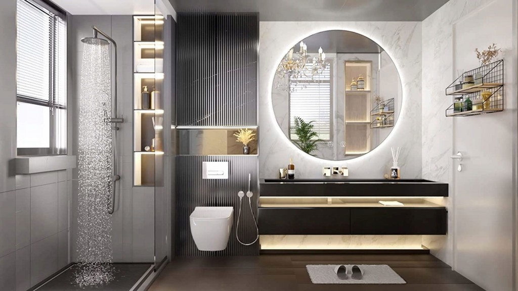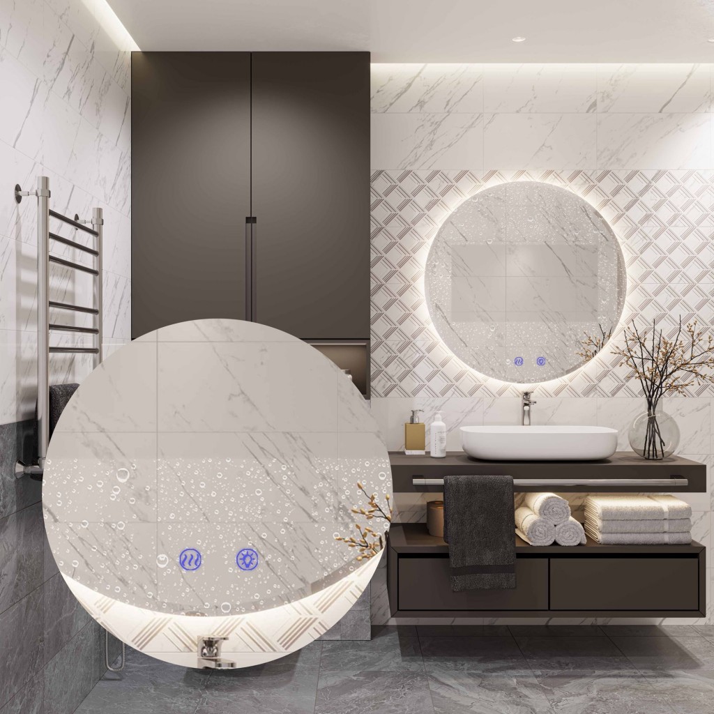 Kulaté zrcadlo s LED podsvícením je ideální pro ty, kteří oceňují pohodlí při používání a moderní design. Zrcadlo je vyrobeno z nejkvalitnějších materiálů, vypadá perfektně a je velmi odolné. Má na výběr ze tří barev LED světla, které lze měnit dotykem – teplé, neutrální a studené, a funkci ohřevu, která zabraňuje zamlžování povrchu. Dotykový spínač umístěný na povrchu zrcadla svítí modře, když je funkce aktivní.