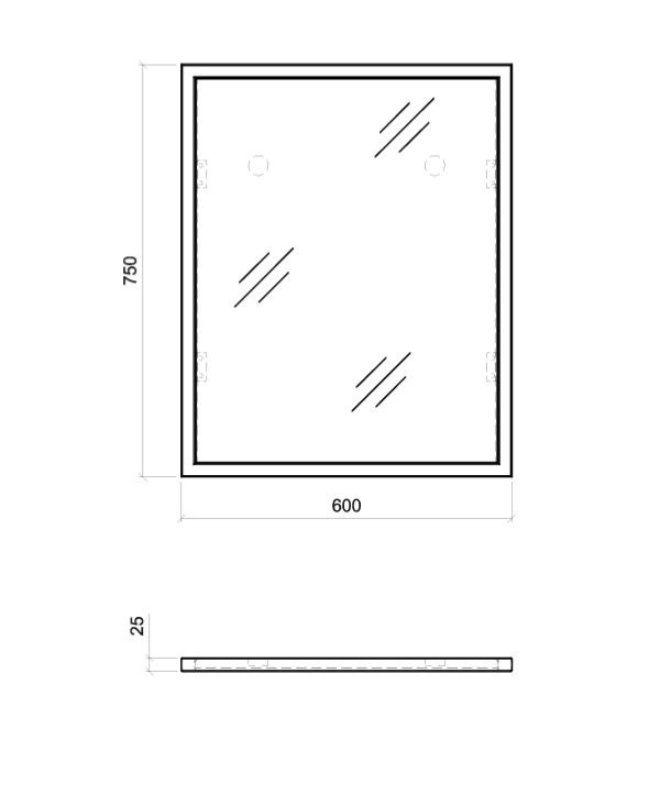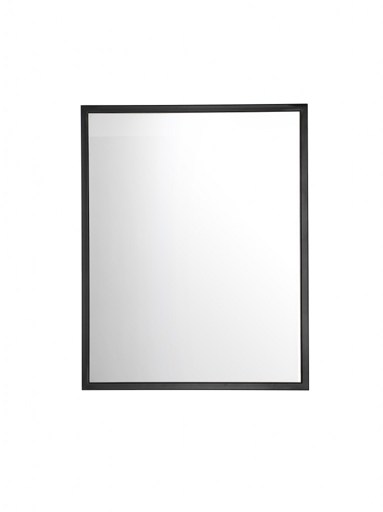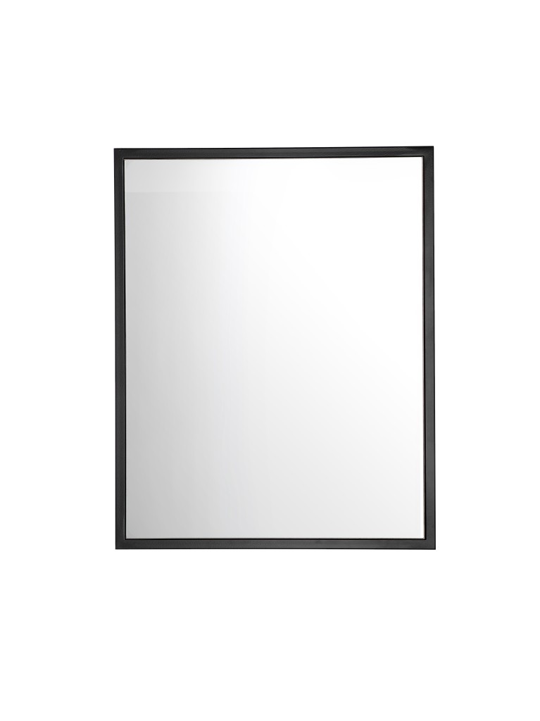 Elegantní zrcadlo s rámem v matné černé barvě. Vyrobené z laminované desky se zrcadlem na laminované desce. Rozměry 60 × 75 × 3 cm, ideální pro moderní koupelny s minimalistickým designem.