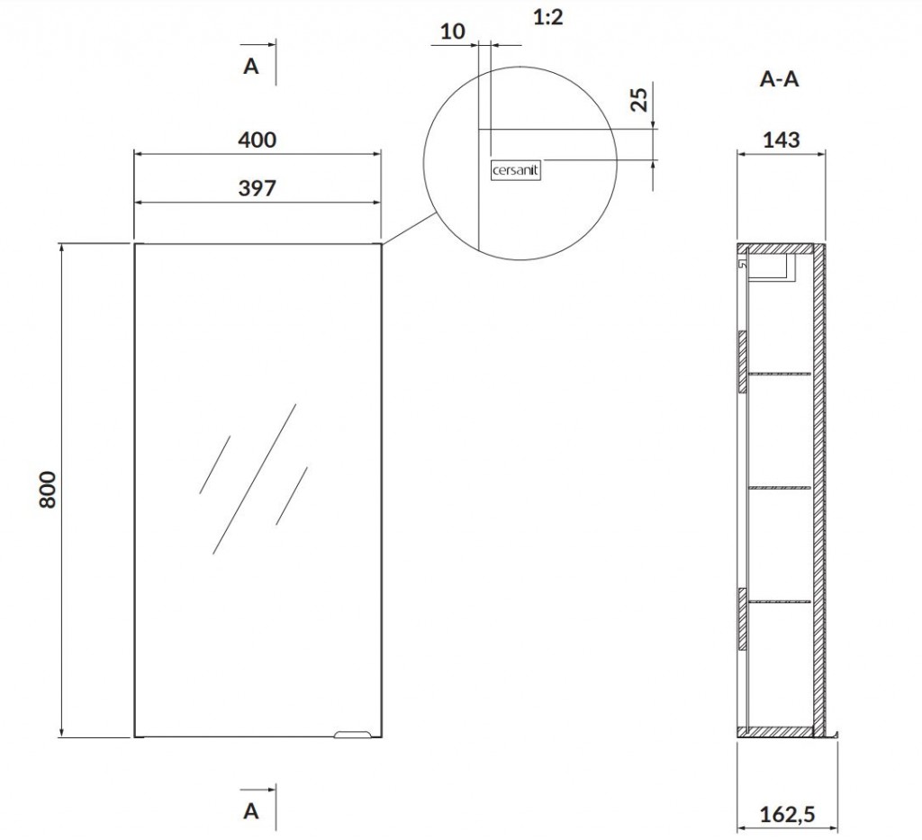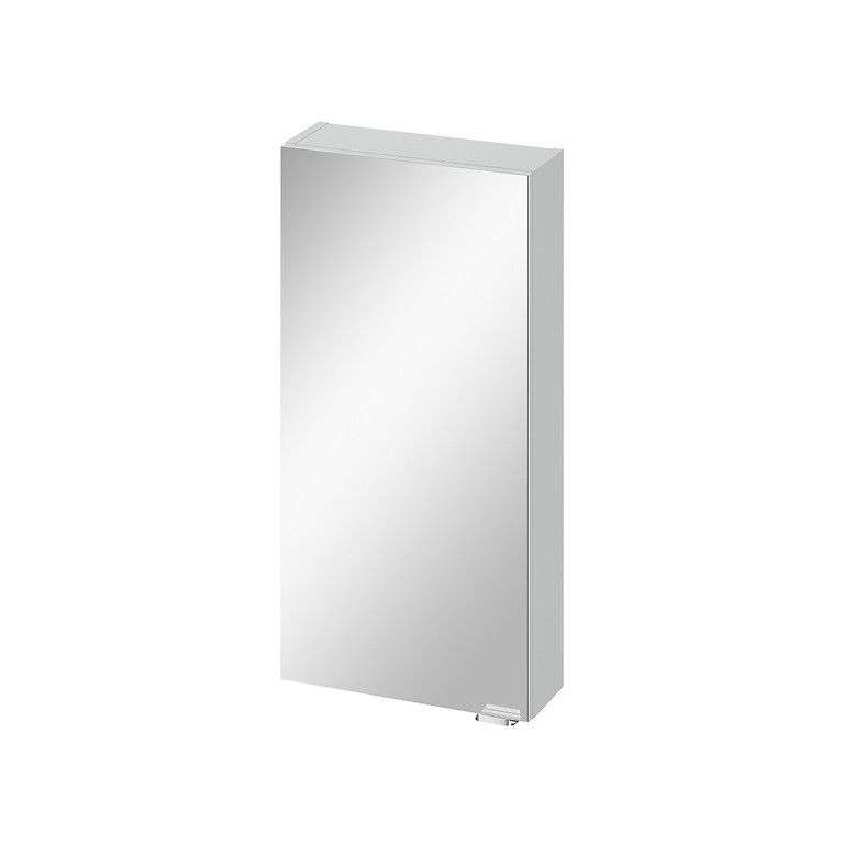 Horní zrcadlová skříňka z laminované dřevotřískové desky a se stříbrnou úchytkou. Uvnitř jsou 3 skleněné police a panty jsou s měkkým dovíráním. Dřevotřísková deska použitá ve skříni má certifikát FSC MIX CREDIT SGSCH-COC-007574.
