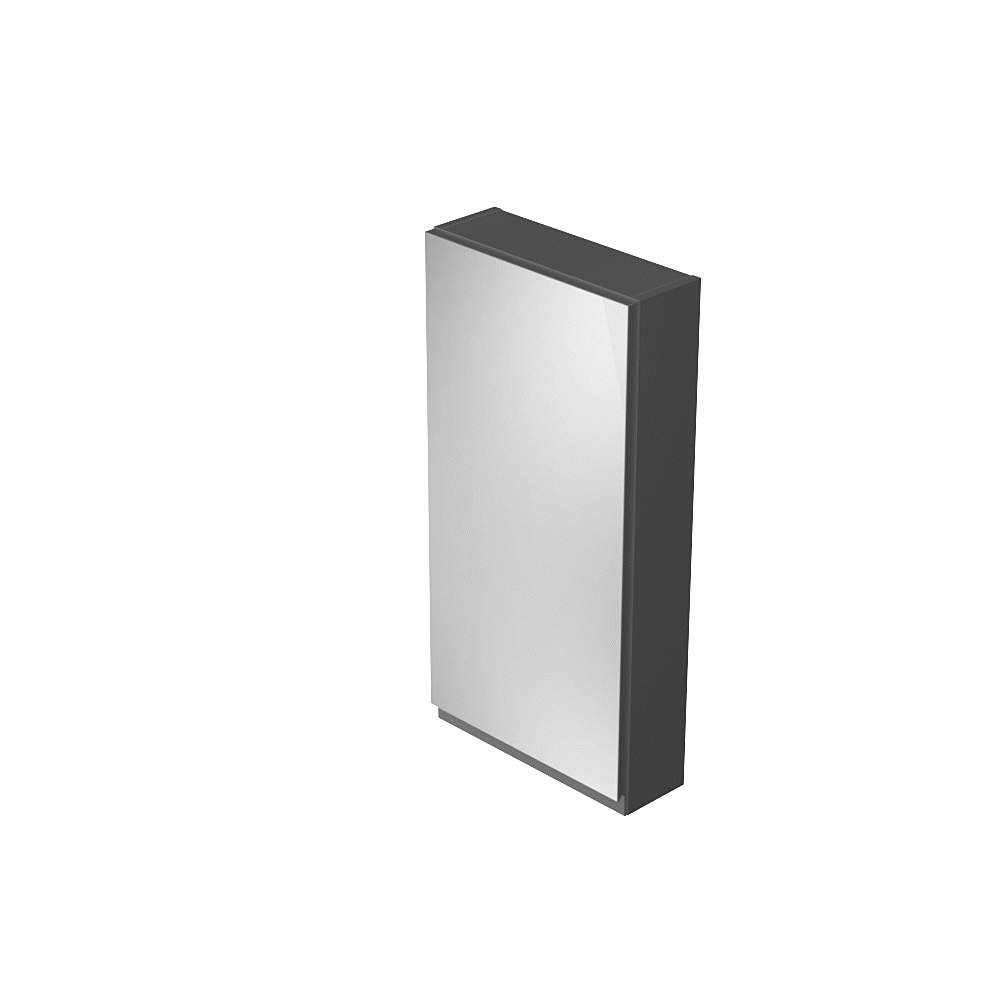 Zrcadlová skříňka MODUO 40 je určena pro drobné koupelnové doplňky. Svou hloubkou je přizpůsobena nástěnným skříňkám a otevřenému modulu z této kolekce. Díky tomu můžete vytvořit elegantní sestavu, která vytvoří jednotnou plochu nad umyvadlovou nebo toaletní zónou koupelny. Korpus zrcadlové skříňky je vyroben z lakované nábytkové desky antracitové barvy s matnou povrchovou úpravou. Otvírání dvířek je univerzální, její orientaci si zvolíte při její montáži. Skříňky série MODUO mají pohodlné frézované úchyty, které vytváří dekorativní prvky a umožňují jednoduché otevírání a zavírání dveří nebo šuplíků. Dvířka jsou vybavena systémem měkkého zavírání. Uvnitř skříně jsou 3 police: jedna nábytková (pevná) a dvě skleněné z tvrzeného skla.